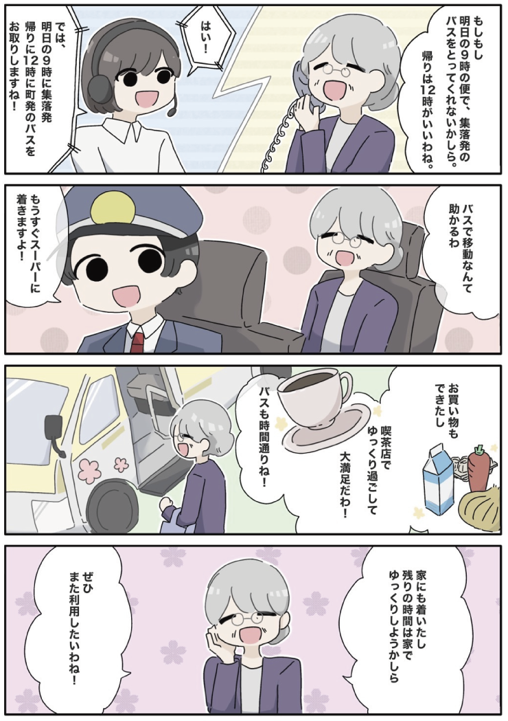 事前予約の「予約制100円町民号」(オンデマンドバス)を運行させ、我が家に近い